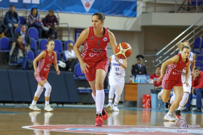 Вторым соперником москвичек на турнире в Курске стали хозяйки площадки из "Динамо". Состав курской команды практически полностью состоит из представительниц сборной России. Всегда приятно проверить свои силы на фоне сильного противника. И радует, что на фоне такого соперника, наша команда выглядела весьма достойно, не позволяя "Динамо" уйти в большой отрыв. В итоге матч завершился в пользу бело-голубых с преимуществом в 6 очков (55:61).